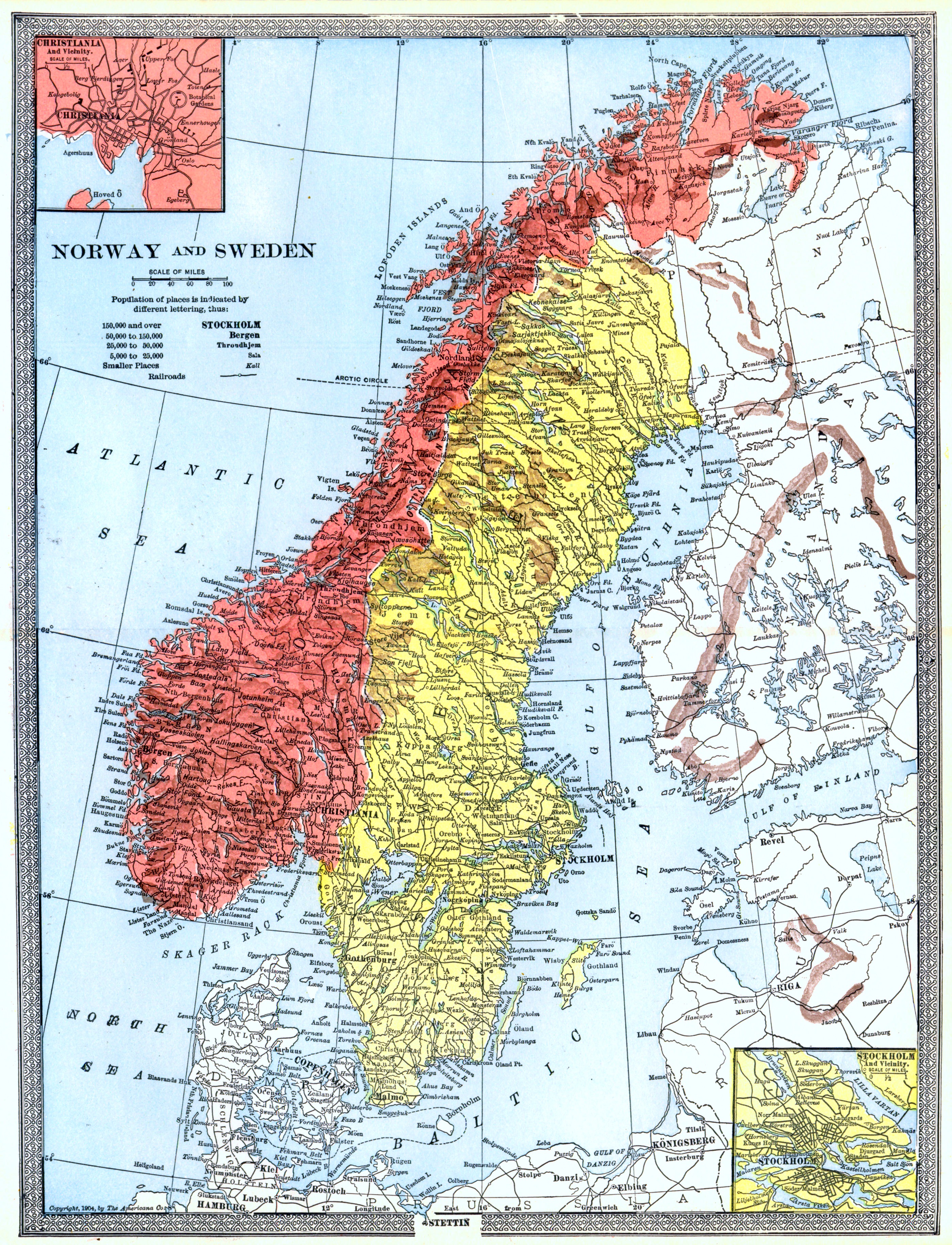 Detailed Map of Norway and Sweden (1907) by Cameron J Nunley on